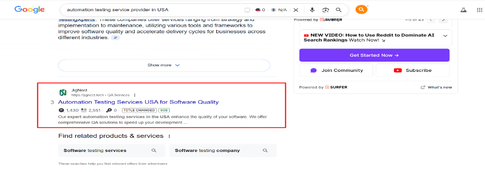 The main goal was to increase Jignect’s organic visibility, ensuring their website attracts more relevant traffic, ranks higher in search results, and effectively showcases their QA services to potential clients.